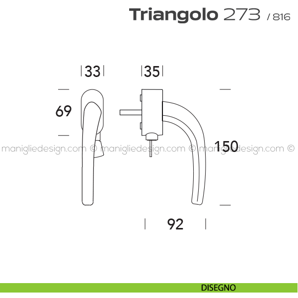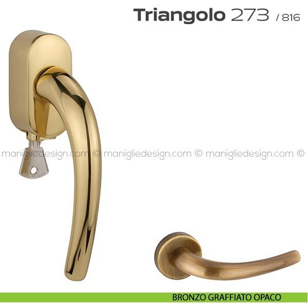 Maniglia per finestra DK con chiave su placca 273 Triangolo Reguitti. Design by Studio Reguitti.