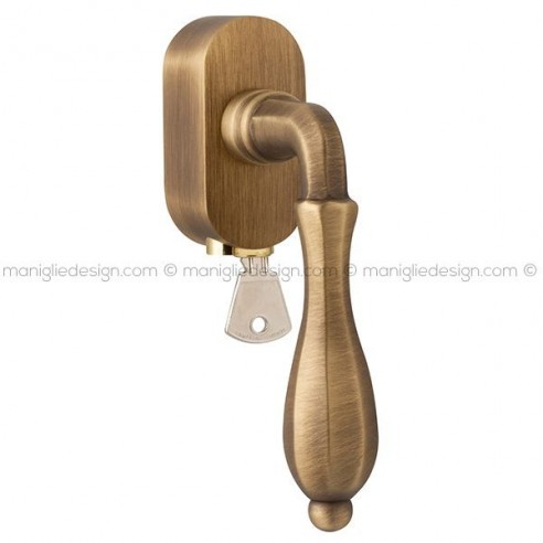 Maniglia per finestra martellina DK con chiave su placca 800 Epoca Reguitti