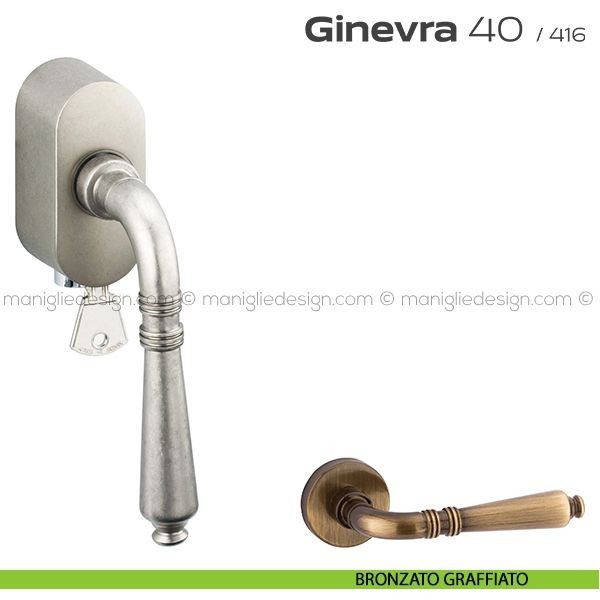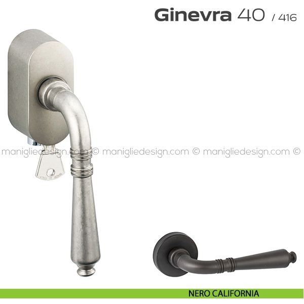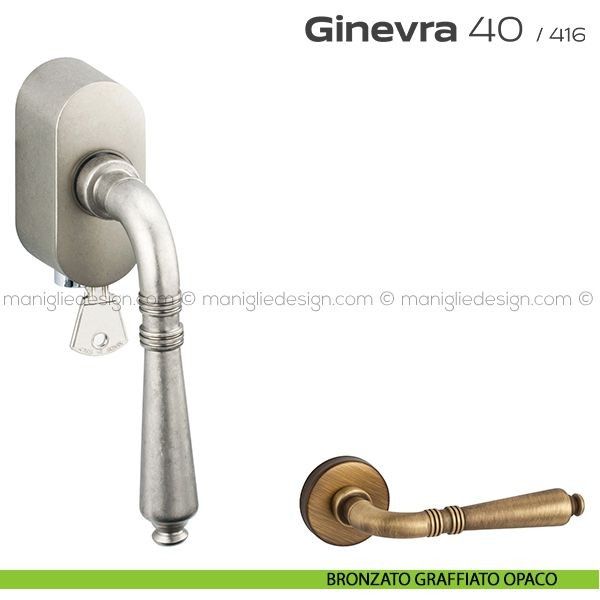 Maniglia per finestra martellina DK con chiave su placca 40 Ginevra Reguitti.