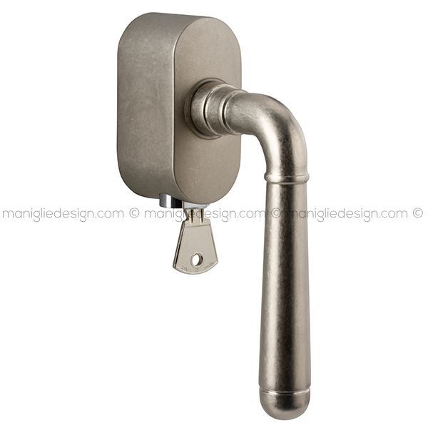 Maniglia per finestra martellina DK con chiave su placca Z01 Mia Reguitti.