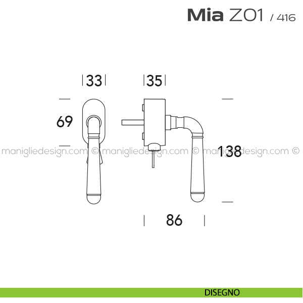 Maniglia per finestra cremonese Z01 Mia Reguitti.