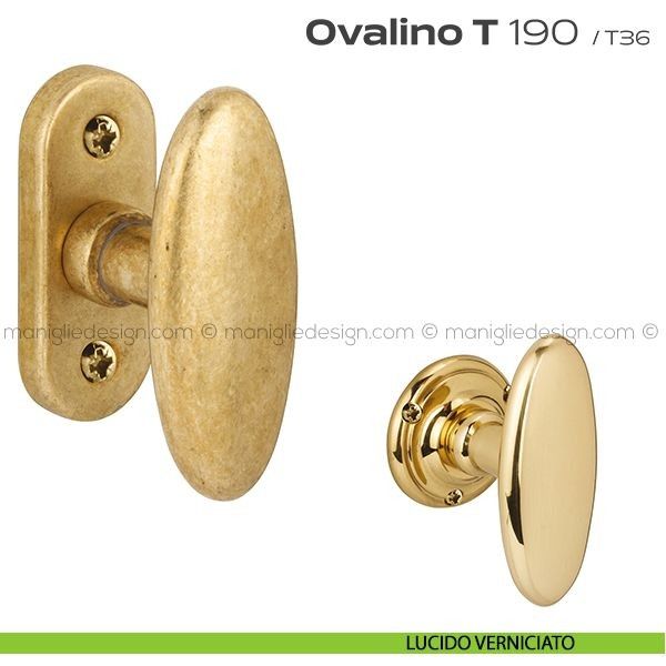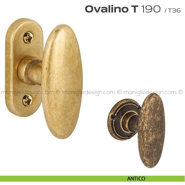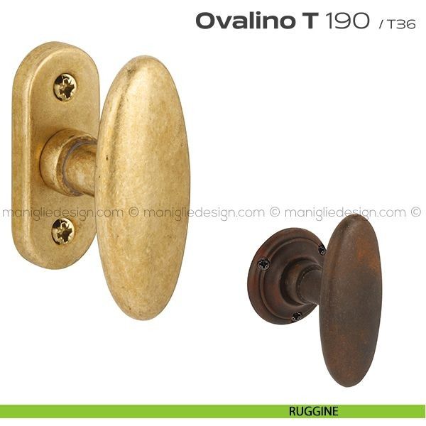Pomolo ovale girevole per porta 190 Ovalino a T Reguitti con rosetta e bocchetta tonda.