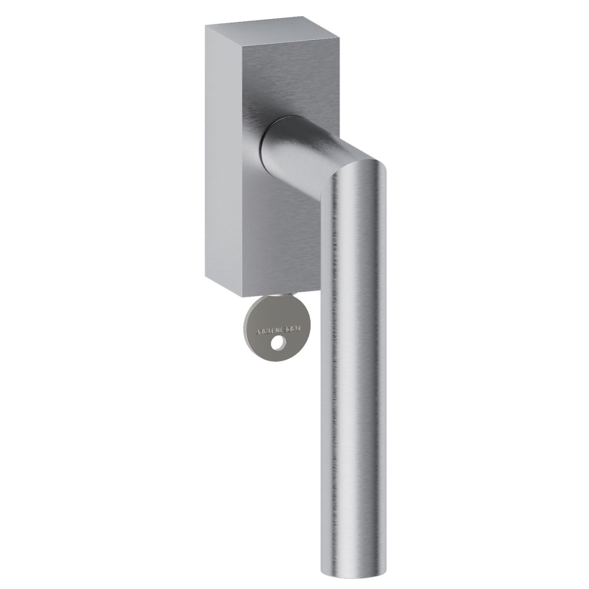 Maniglia in acciaio per finestra martellina DK con chiave su placca Toledo L14 Reguitti con rosetta rettangolare. Design by Studio Reguitti Inox.