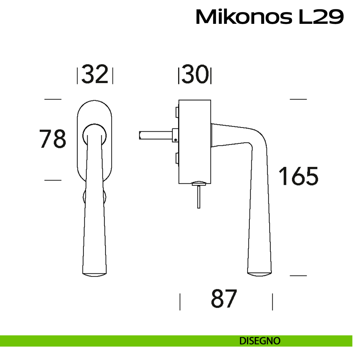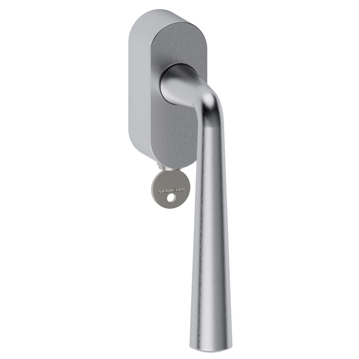 Maniglia in acciaio per finestra martellina DK con chiave su placca Mikonos L29 Reguitti. Design by Studio Reguitti Inox.