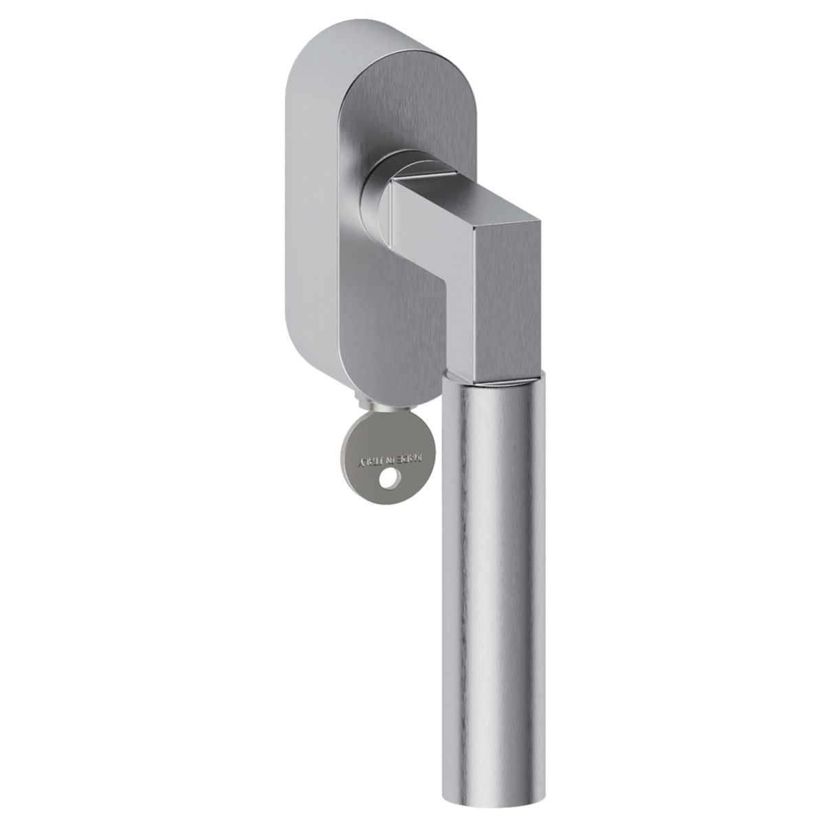Maniglia in acciaio per finestra martellina DK con chiave su placca Ottawa L19 Reguitti. Design by Studio Reguitti Inox.
