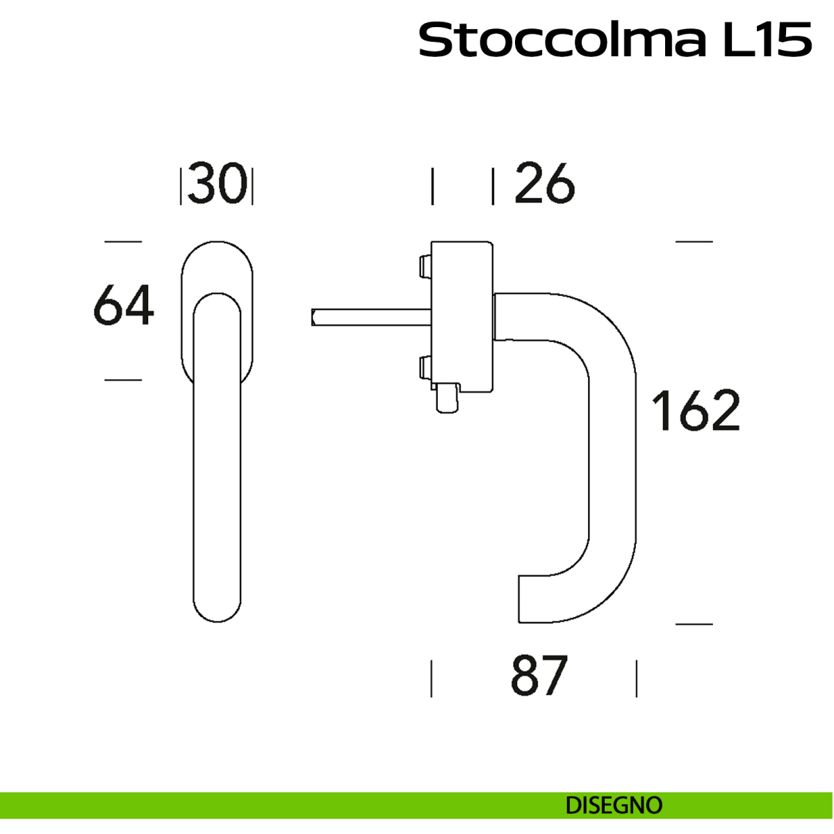 Maniglia in acciaio per finestra martellina DK Stoccolma L15 Reguitti Inox.