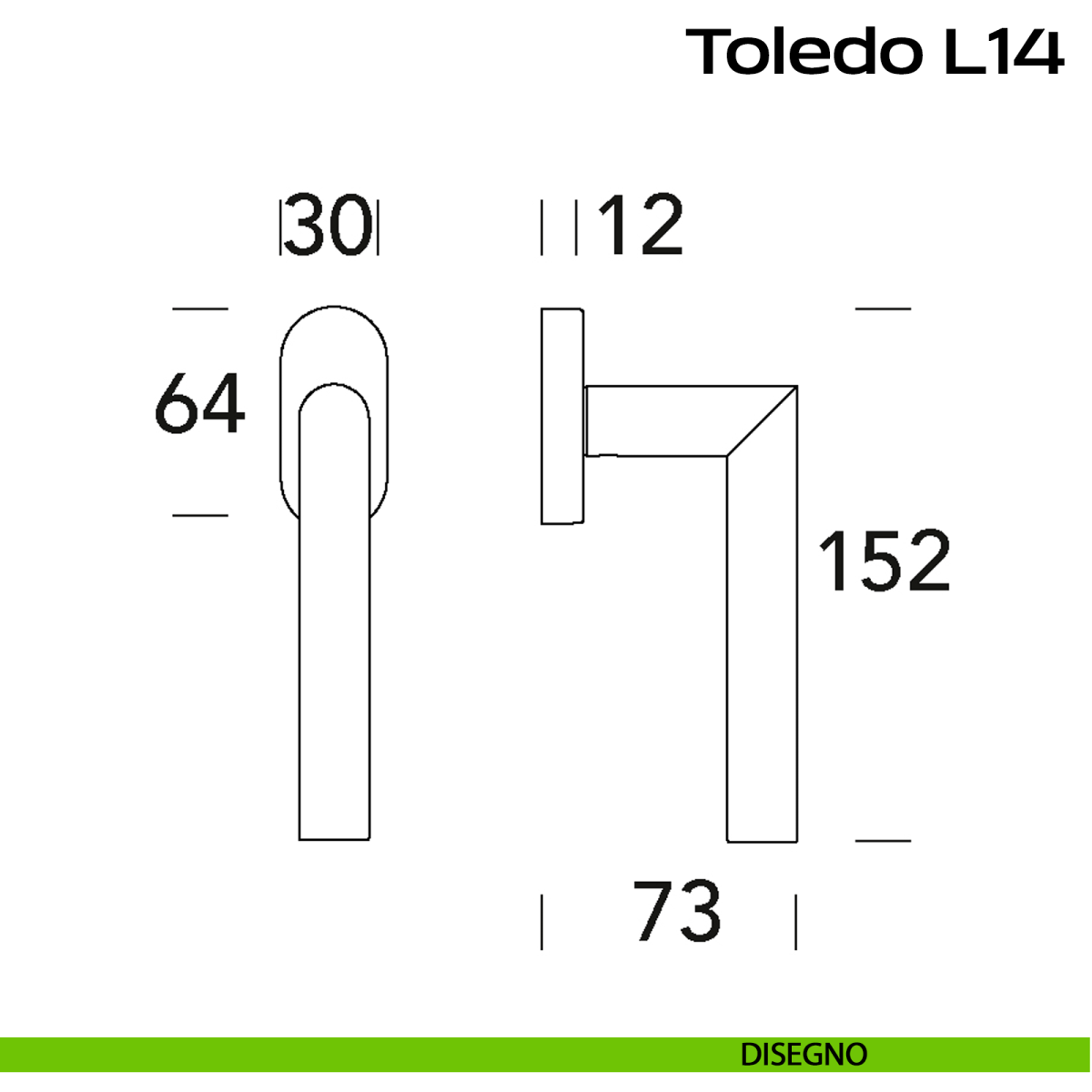 Maniglia in acciaio DK per finestra Toledo L14 Reguitti Inox con quadro regolabile