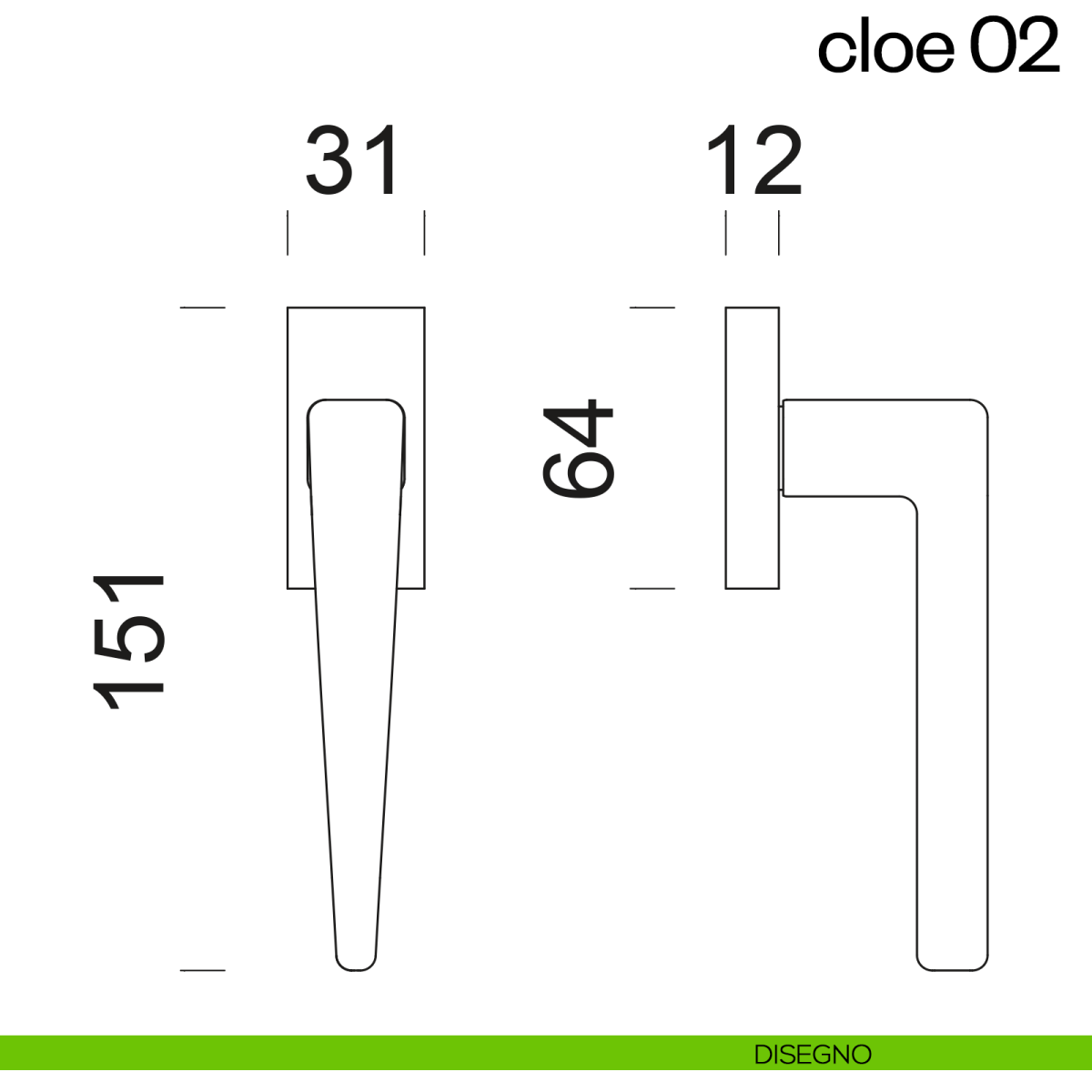 Maniglia per finestra martellina DK Cloe 02 dnd. Design by Dnd Technical Division.