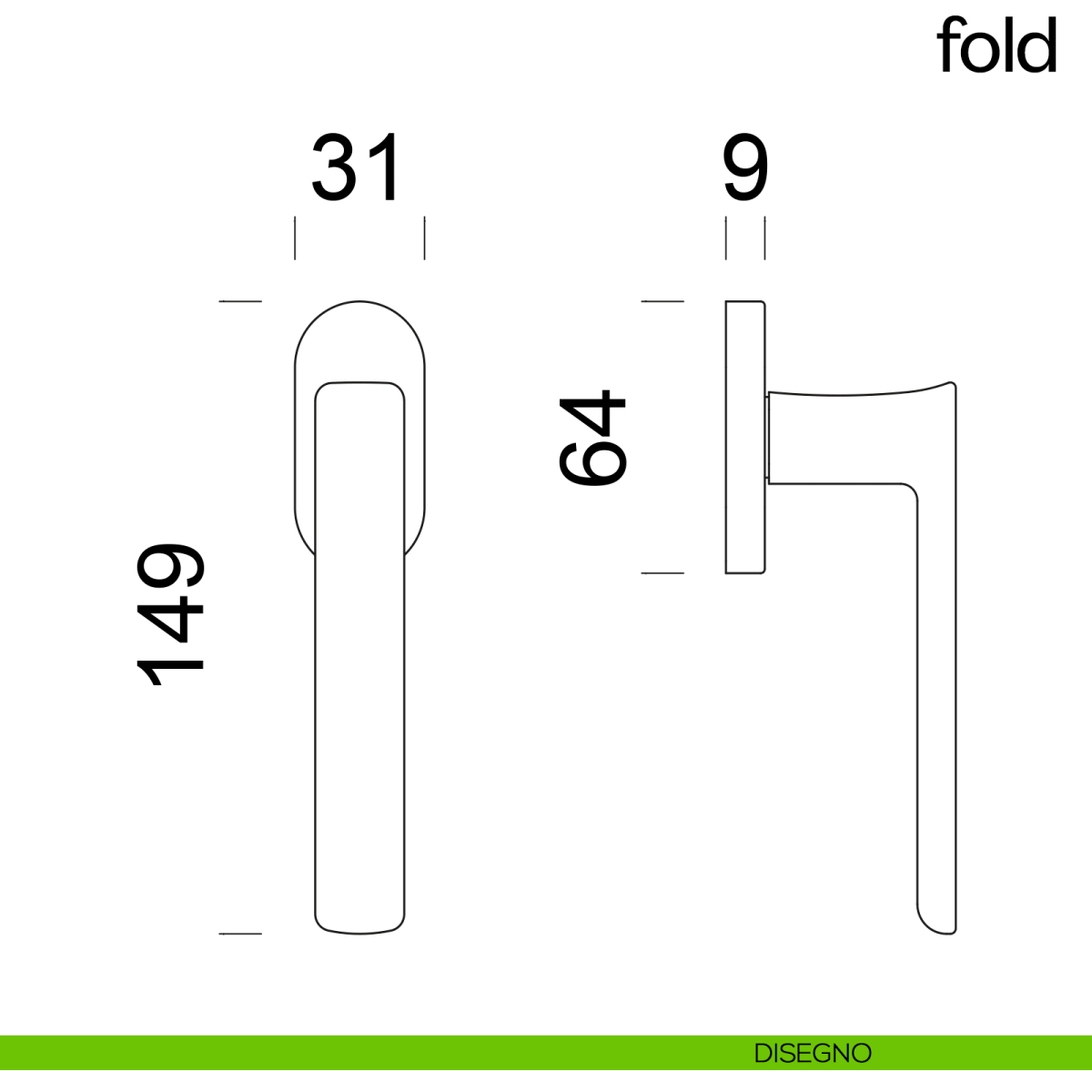Maniglia per finestra martellina DK Fold dnd. Design by Mario Padiglione.