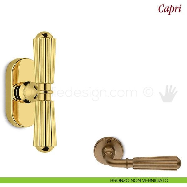 Capri Antologhia viene proposta anche nella variante maniglia per porta interna e cremonese per finestra. Scopri tutte le versione della maniglia Capri Antologhia per completare con stile il tuo arredamento.