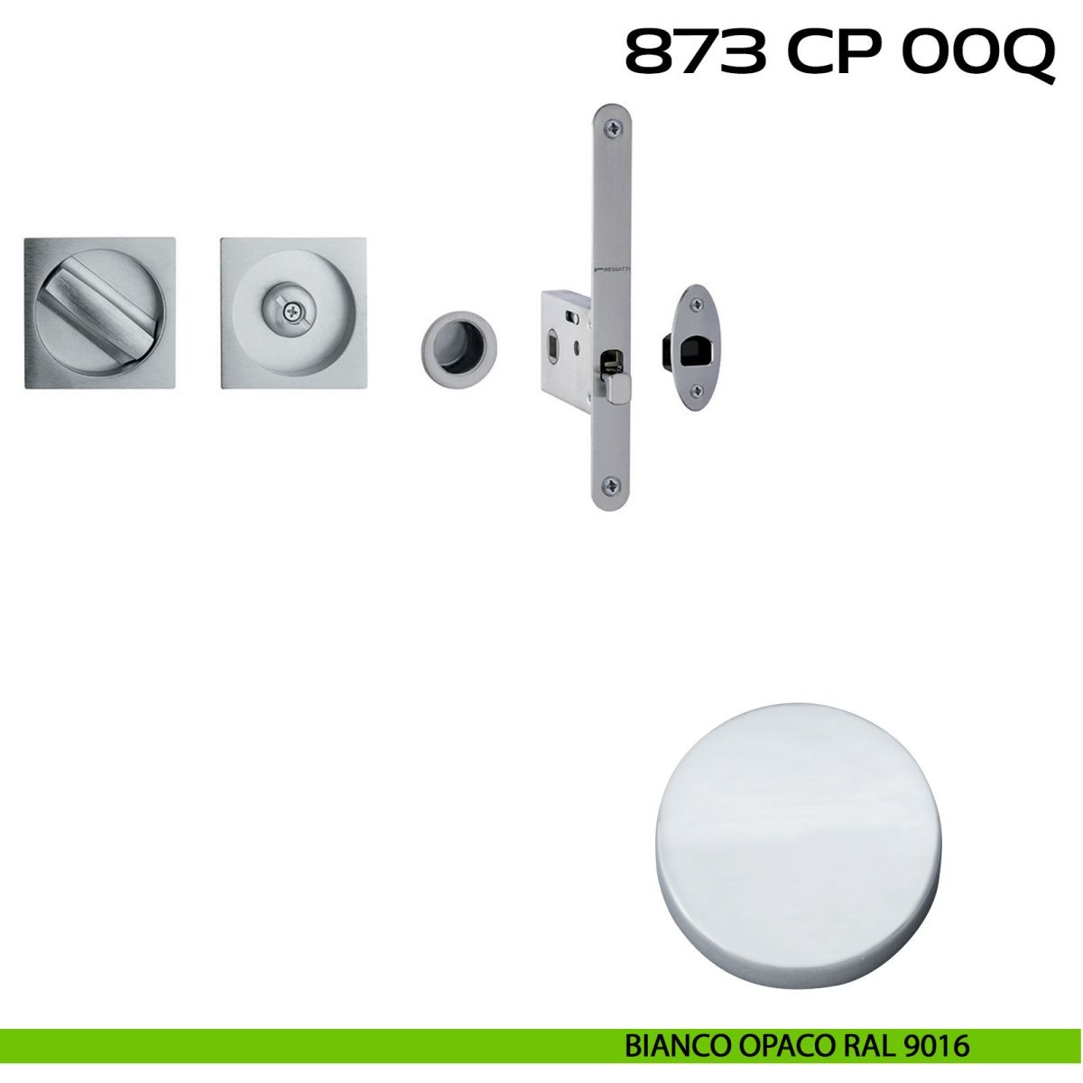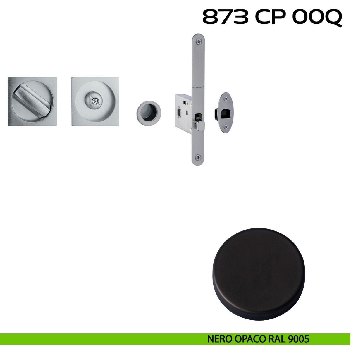 Kit placche incasso quadrate con nottolino per porte scorrevoli Reguitti 873 con frontalino di trascinamento e serratura 026SR.