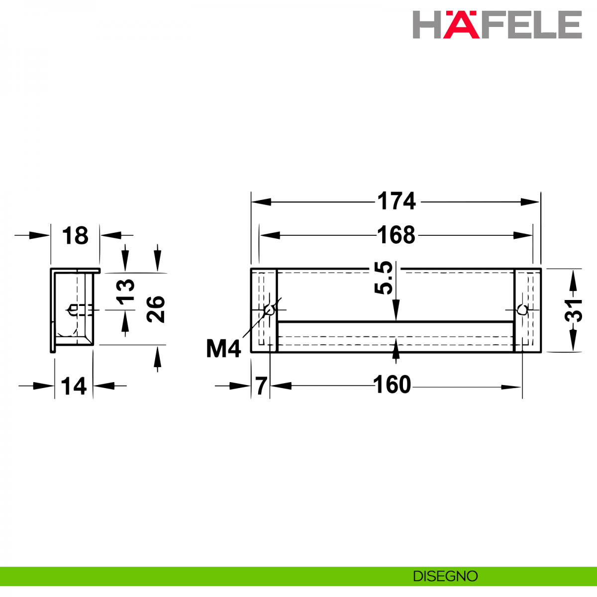 Maniglia rettangolare a incasso per mobile Hafele in Zama.