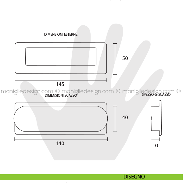 - Dimensioni interne: 40x140x10 mm