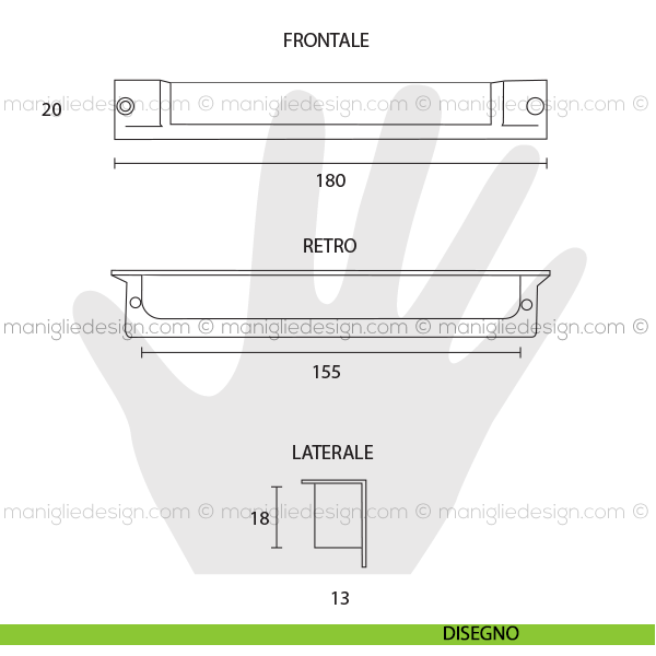 - Dimensione esterne: 20x180 mm