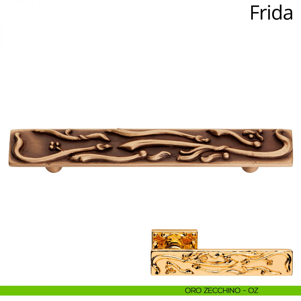 Esuberante e all’avanguardia, come l’artista da cui prende il nome, Frida Kahlo, la collezione di maniglie per porte Frida è un’autentica novità nel mondo della maniglieria tradizionale. Le sue forme, squadrate e rigorose, sono marcate da fregi sinuosi, simili a segni di pittura; è quasi come se un’abile pittrice si fosse divertita a decorarle con delicati tocchi di pennello. Per garantire la loro perfetta esecuzione, ed essere valorizzati dal particolare processo di lucidatura, lo stampo utilizzato per questa maniglia è caratterizzato da un’elevatissima precisione, la stessa che Linea Calì ripone in ogni collezione di alta gamma. La serie di maniglie vintage Frida è disponibile in tre finiture, fra le quali spicca il prezioso oro francese, con le sue delicate e splendenti nuance che vanno dall’oro al bordeaux. Con le sue forme importanti e artistiche, la collezione di maniglie Frida arreda ogni ambiente donandogli un’aria sofisticata ed elegante.