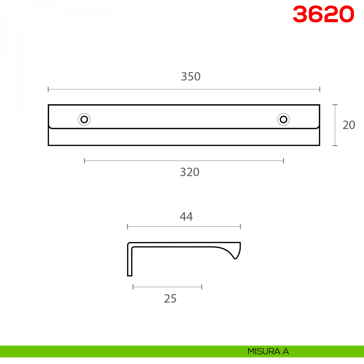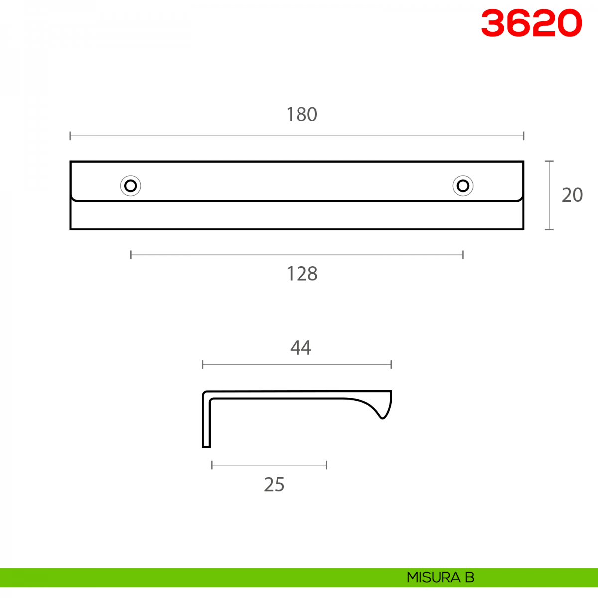 Maniglia per mobile 3620 Mital in alluminio.