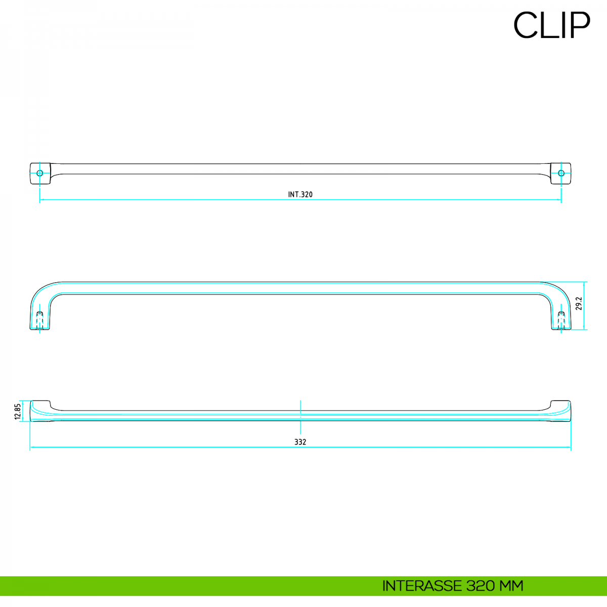 - Lunghezza/Interasse 332/320 mm