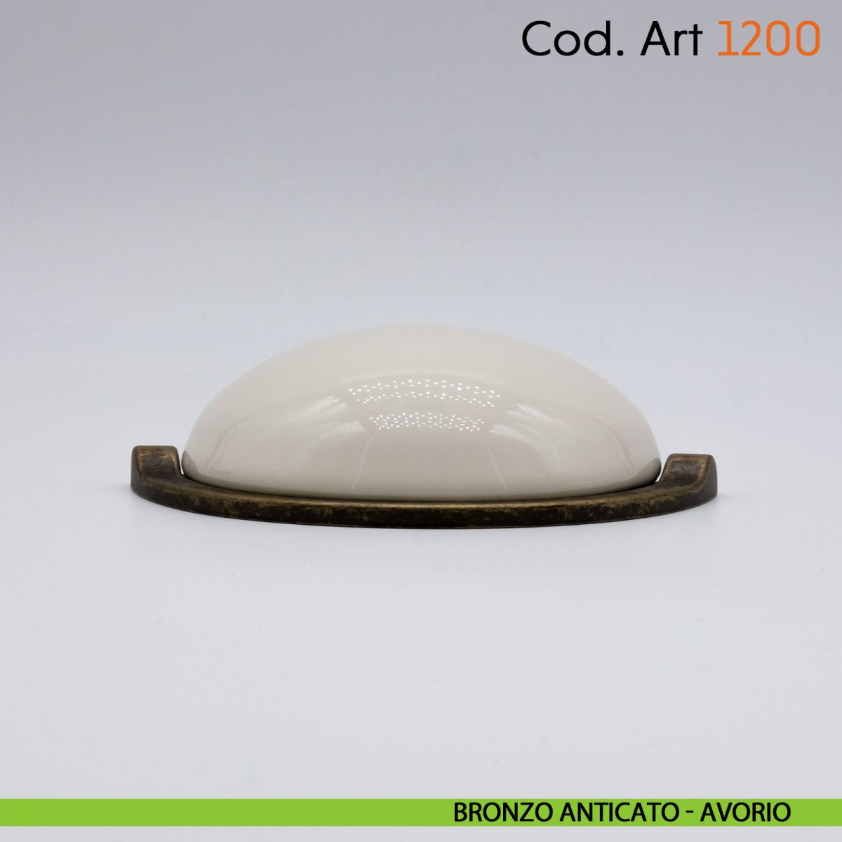 Maniglia conchiglia con porcellana rustica in zama per mobile shabby Cosmov articolo 1200.