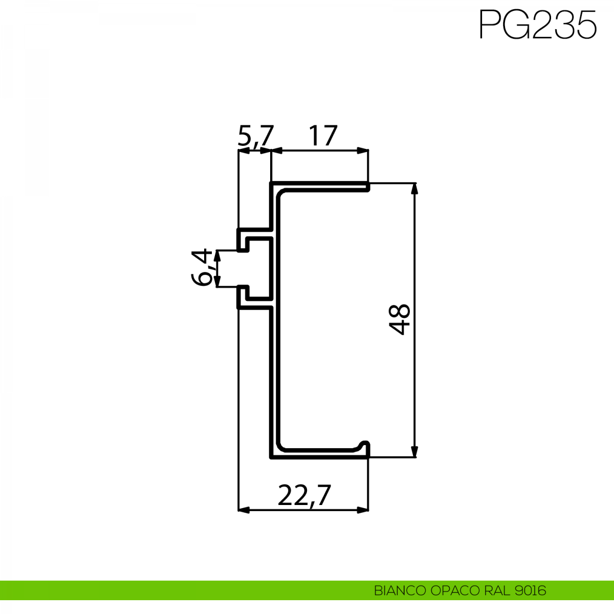 Profilo gola cassettiera per cucina altezza 66 mm Gap Italia articolo PG236, in alluminio verniciabile, raggio zero, utilizzabile per base o per elementi a colonna di cucina, fissaggio tramite clip (da acquistare separatamente), sistema brevettato pensato per poter ispezionare e sostituire in qualsiasi momento tutti i sistemi gola.