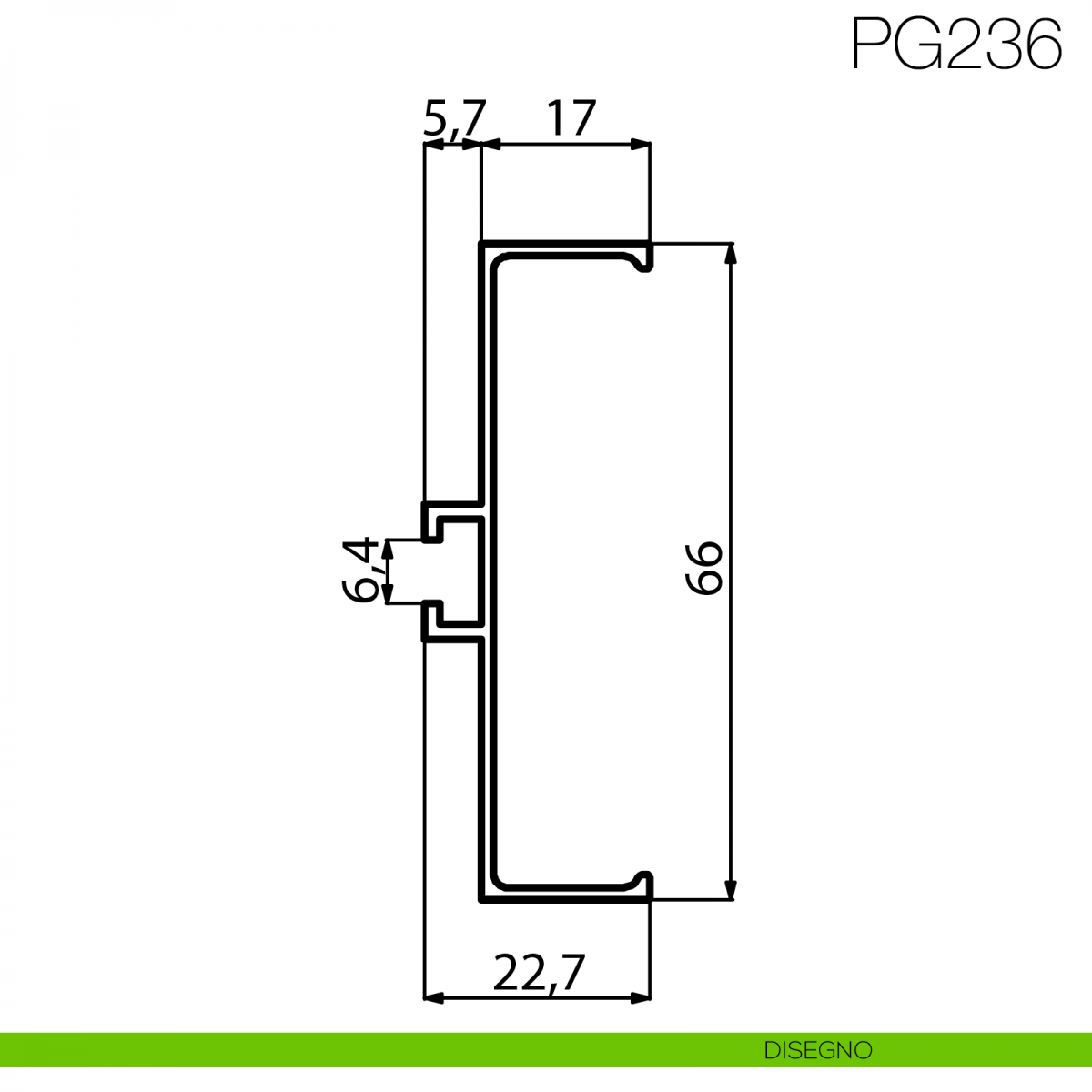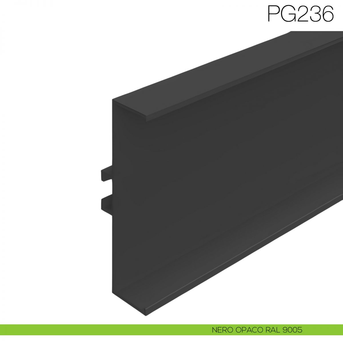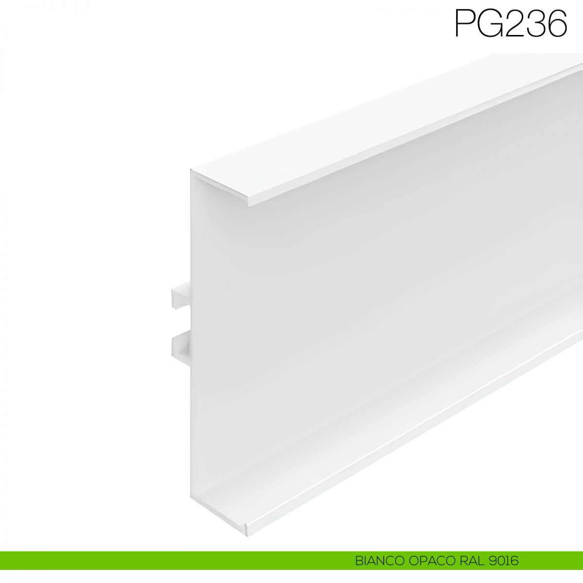 Profilo gola orizzontale e verticale altezza 66 mm Gap Italia articolo PG236, in alluminio verniciabile, raggio zero, utilizzabile per base o per elementi a colonna di cucina, fissaggio tramite clip (da acquistare separatamente), sistema brevettato pensato per poter ispezionare e sostituire in qualsiasi momento tutti i sistemi gola.