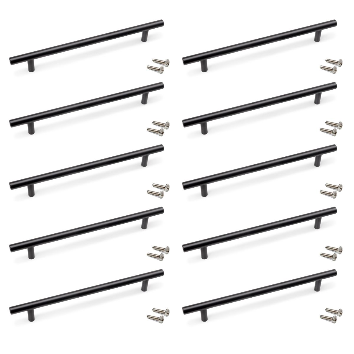 Emuca Lotto di 10 maniglie per mobili Orlando, L336mm, interasse 256mm, Acciaio, Verniciato nero