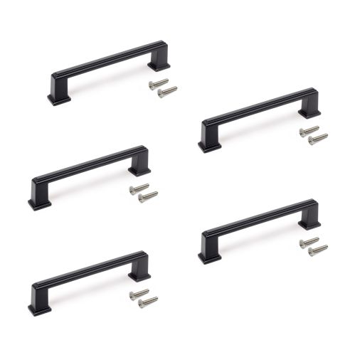 Emuca Lotto di 5 maniglie per mobili Tanger, L147.5mm, interasse 128mm, Zama, Verniciato nero
