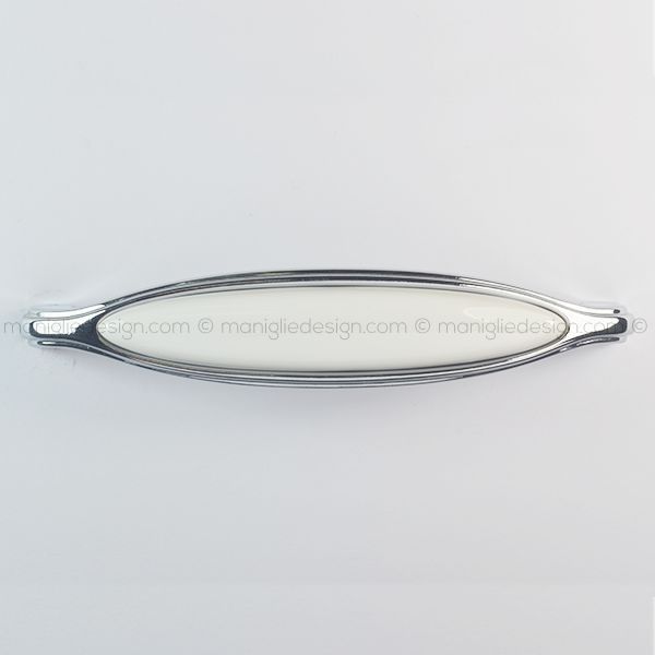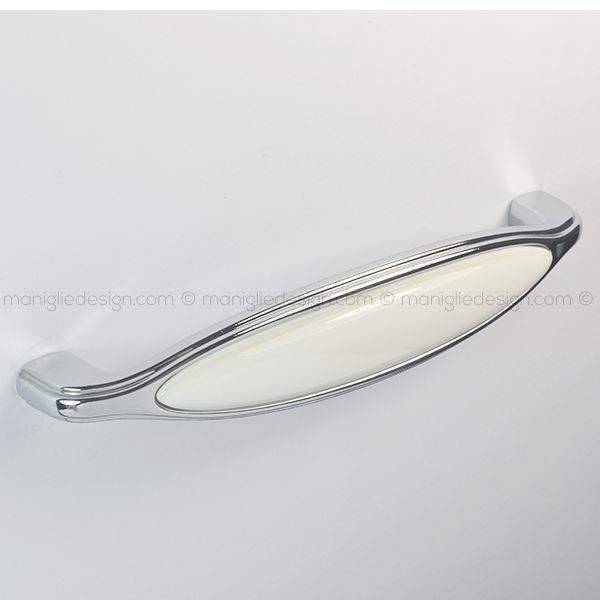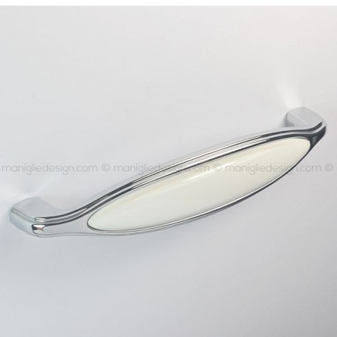 Maniglia in ceramica bianca per mobile Metal Style finitura cromo lucido art. MG31046.