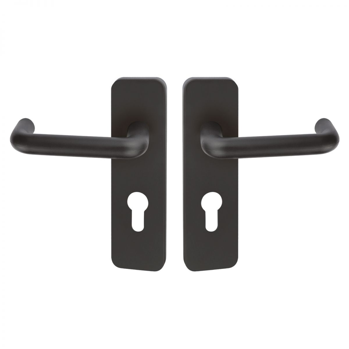 Maniglia antincendio in acciaio nera con placca per porta foro yale Spagna Fimet Inox. Design by Fimet Inox Project.