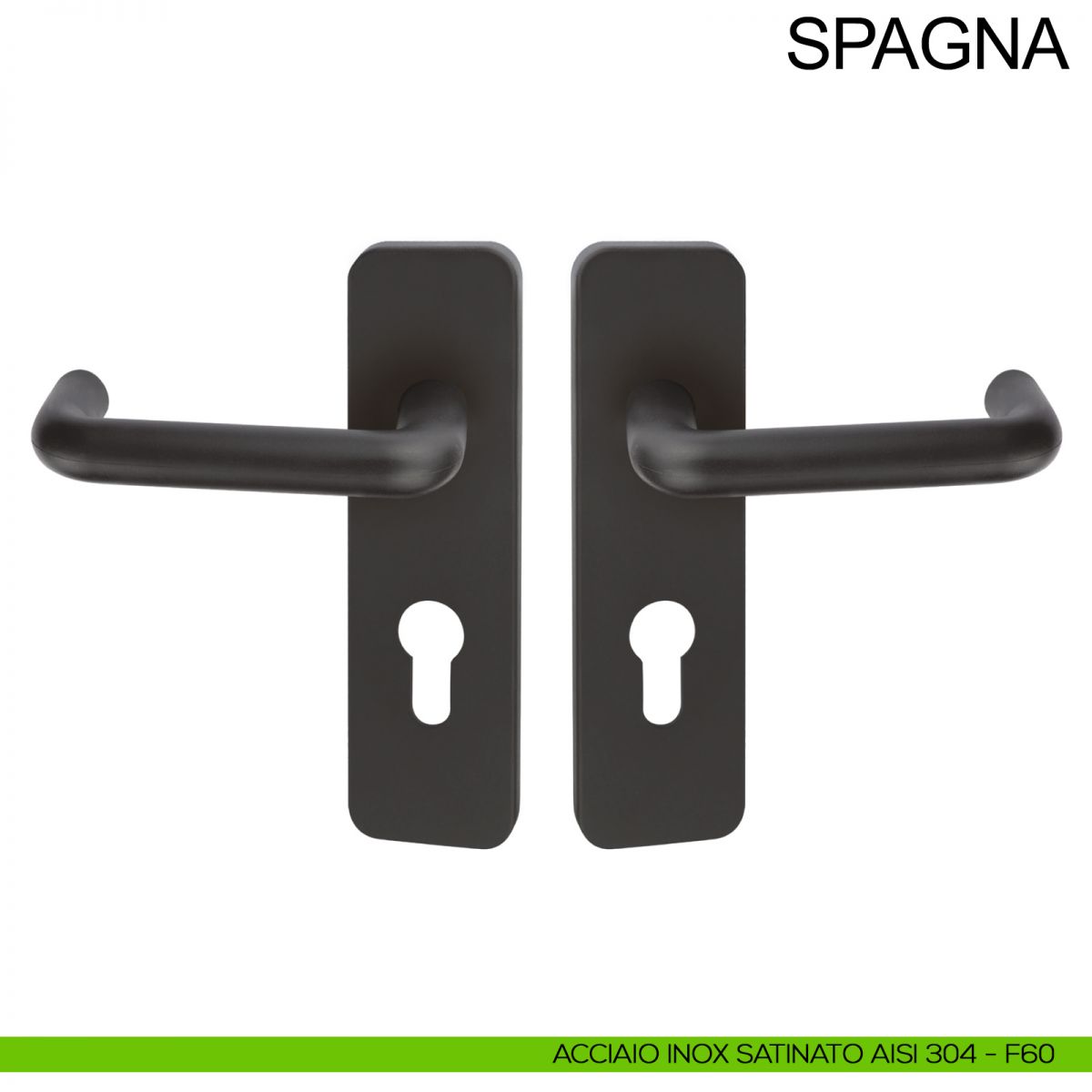 Maniglia antincendio in acciaio nera con placca per porta foro yale Spagna Fimet Inox