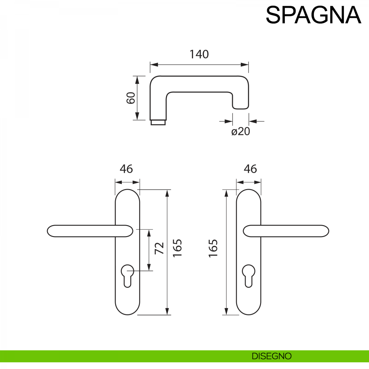 Maniglia con placca e pomolo fisso in acciaio per porta tagliafuoco foro yale Spagna...