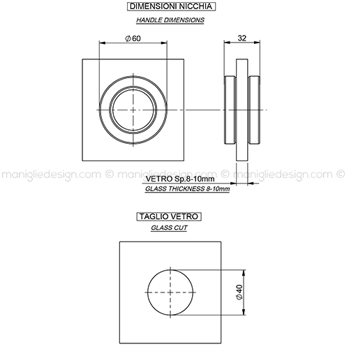 Nicchia diametro 60 mm h.13 mm per porta in vetro spessore 8-10 mm Comit Glass art. NVT603.