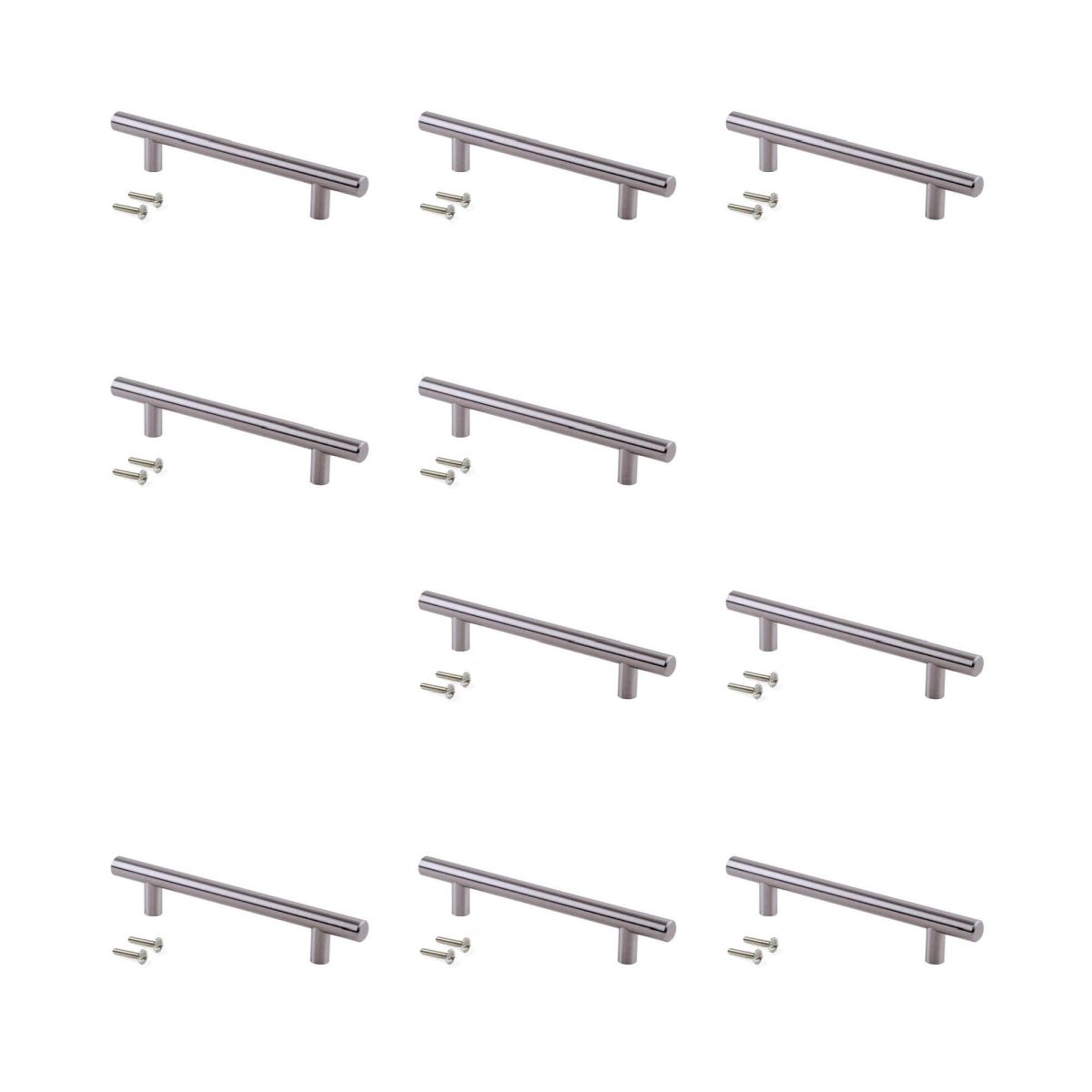 Emuca Maniglie per mobile, D. 12 mm, interasse 128 mm, Acciaio, Nichel satinato, 10 u.