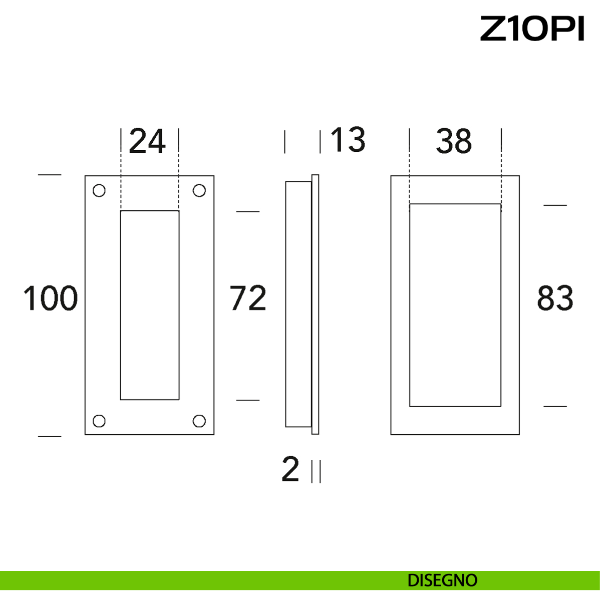 Maniglia quadra da incasso in acciaio 50x50 mm Z50 PI Reguitti Inox