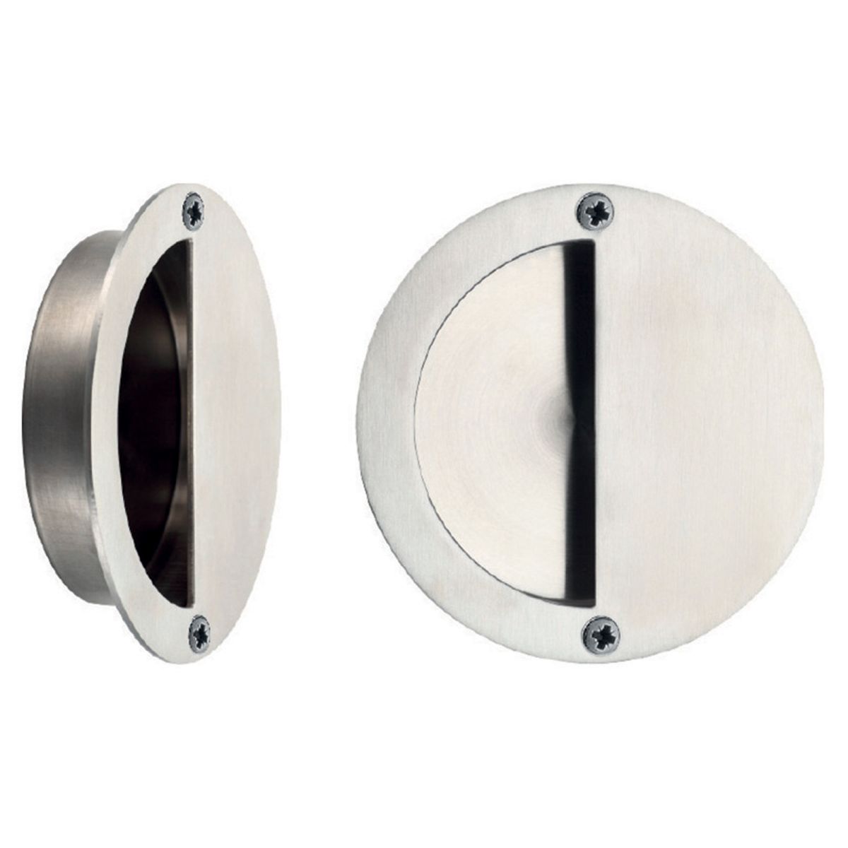 Maniglia incasso tonda in acciaio inox satinato 304 misura ø90 mm articolo Z90 PI Reguitti Inox. Design by Reguitti Inox.