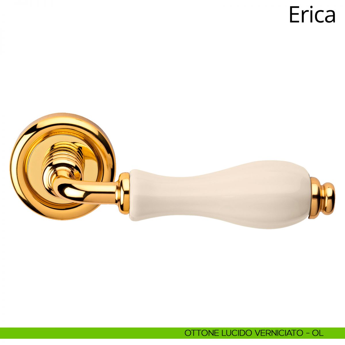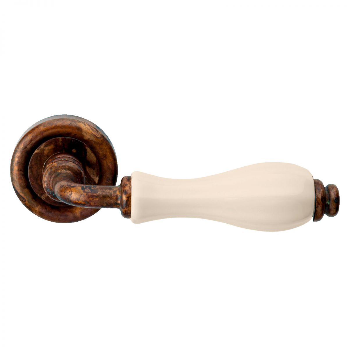 Maniglia con porcellana avorio per porta interna Erica Linea Calì su rosetta tonda.