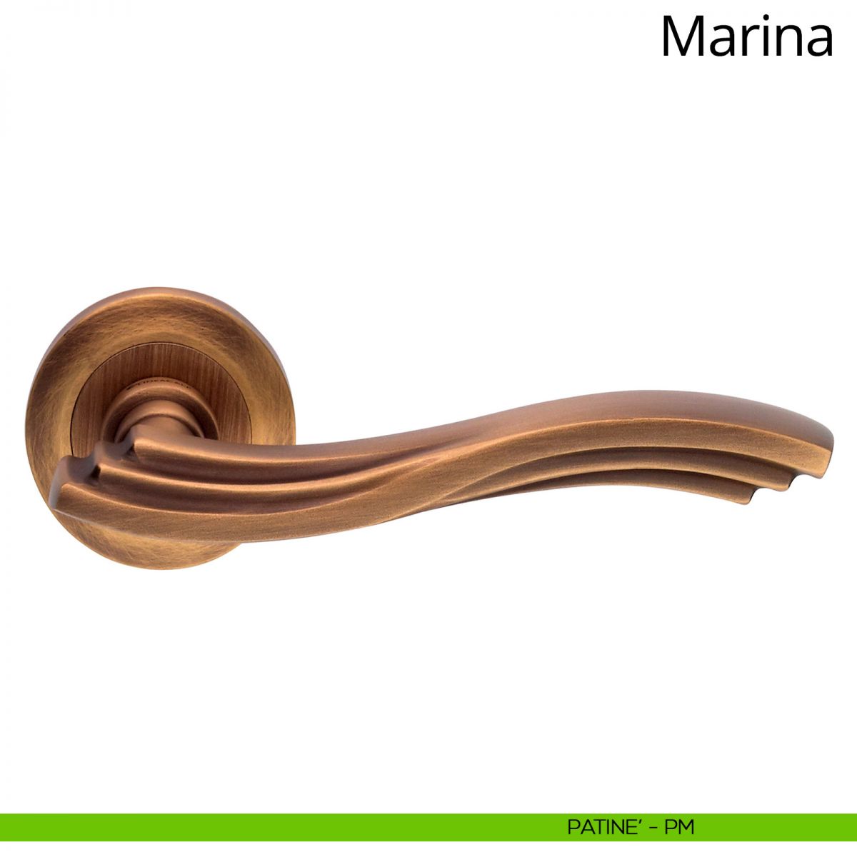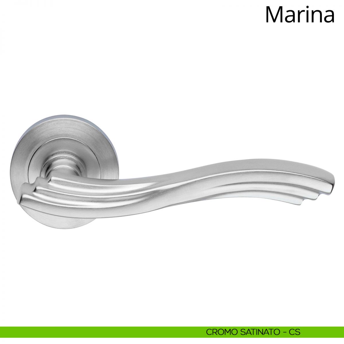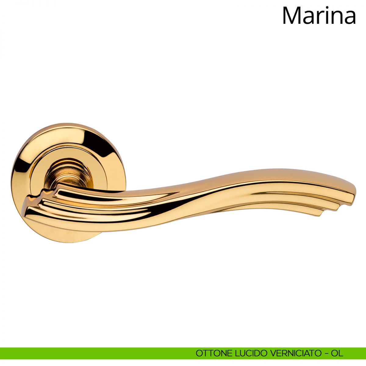 Passano gli anni, cambiano le mode, ma la collezione Marina rimane una delle maniglie per porte e finestre preferite dai nostri clienti; è una collezione che non finisce mai di piacere, anche alla clientela più giovane. Classica per le sue forme sinuose, ma anche contemporanea perché si adatta facilmente agli stili di arredo attuali. L’impugnatura appare stratificata e movimenta il design creando un comodo appoggio per la mano. Nella parte iniziale si riduce proporzionalmente per accogliere il pollice, mentre nella parte finale si inspessisce per ospitare le ultime dita. Grazie a questo accorgimento la presa risulta comoda e sicura. Il collo della maniglia riprende il concetto di stratificazione dell’impugnatura, sviluppandosi in modo eccentrico verso la rosetta. Marina non ha alcun spigolo vivo e questo le permette di non essere un pericolo anche in presenza di bambini, che accidentalmente potrebbero urtarla. Scelta nella finitura ottone Marina si sposa perfettamente con porte classiche in legno pantografate, mentre nelle finiture cromo lucido e satinato si abbina con estrema facilità a porte lisce in laminato anche dall’effetto materico.