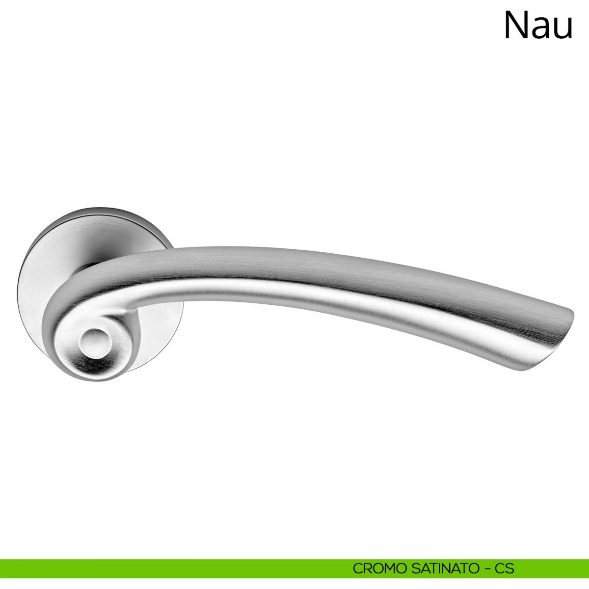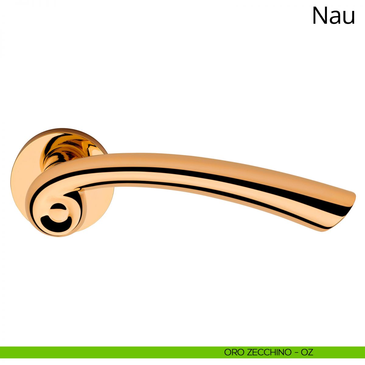 “La virgola indica uno stacco di debole intensità tra due parole o due proposizioni contenuti in in un periodo”. Nau riveste proprio questo ruolo, unendosi alla porta e dialogando con lo stile dell’ambiente circostante formando un ideale ponte stilistico. L’impugnatura fortemente arcuata è caratterizzata da un profilo che ne divide otticamente la sezione e permette alla luce ambientale di amplificarne ulteriormente il motivo a spirale. Anche per questa maniglia è stato utilizzata la preziosa cromatura a spessore, che garantisce una lucentezza senza pari e dona una particolarissima sensazione tattile, più “mordida” rispetto alle cromature tradizionali.