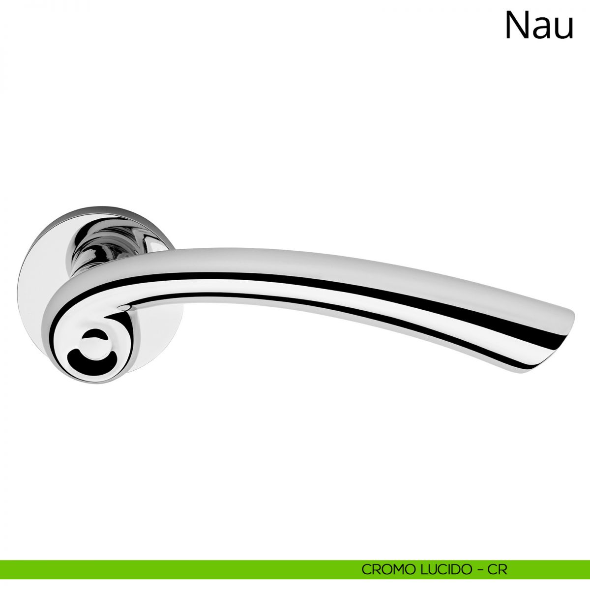 Maniglia per porta interna Nau Linea Calì su rosetta tonda tradizionale.
