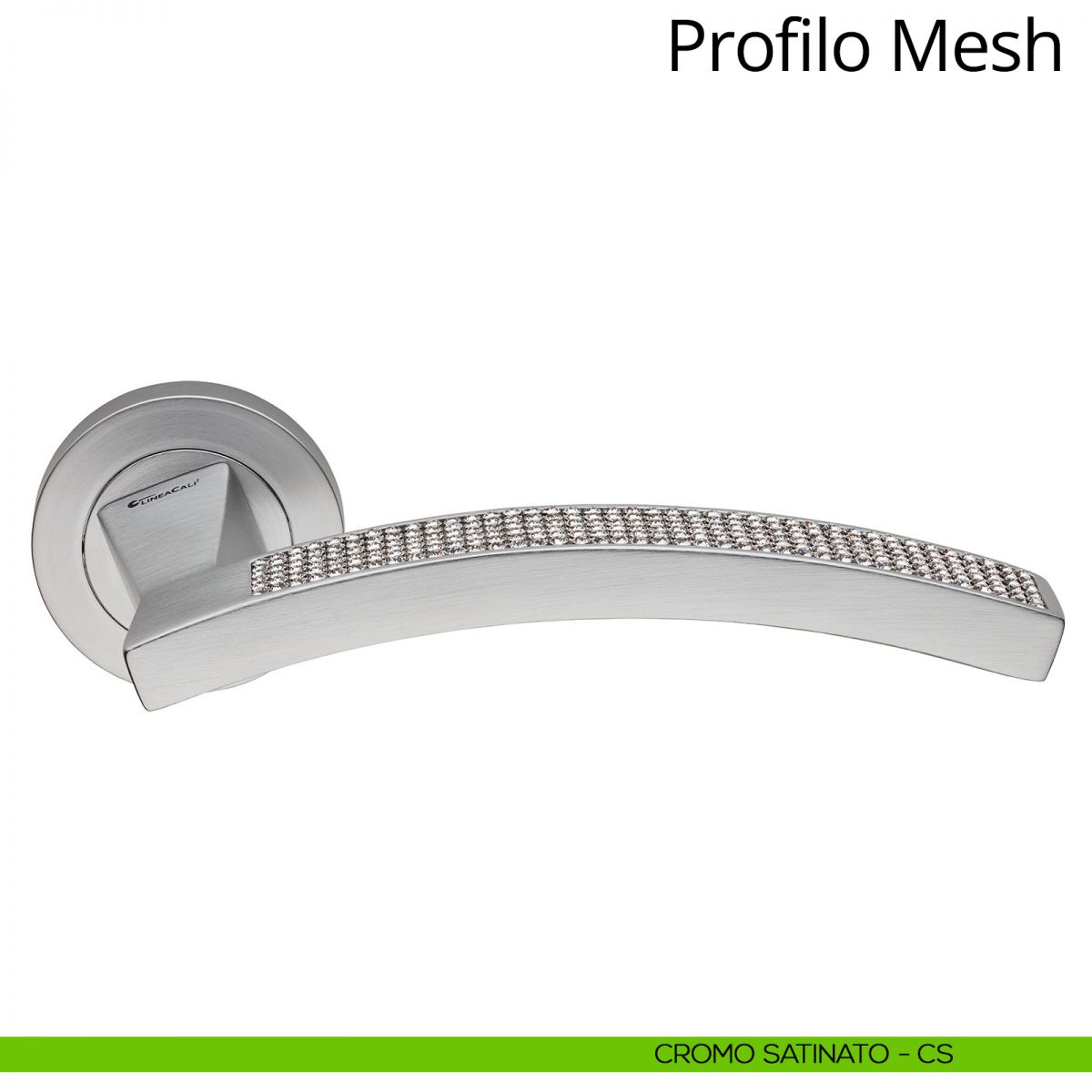 Maniglia con Swarovski per porta interna Profilo Mesh Linea Calì su rosetta tonda.