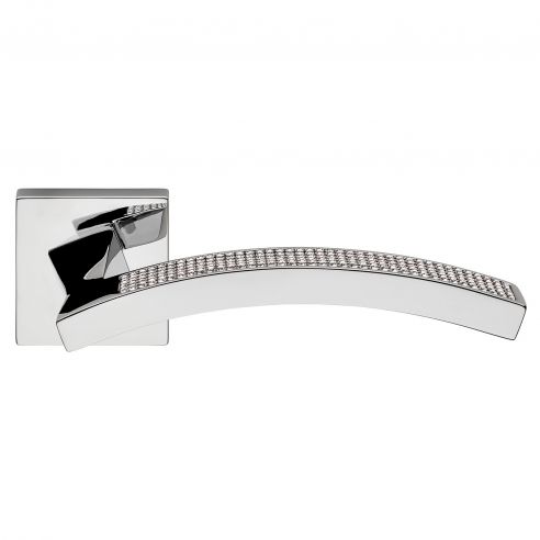 Maniglia con Swarovski per porta interna Profilo Mesh Linea Calì su rosetta quadrata tradizionale.
