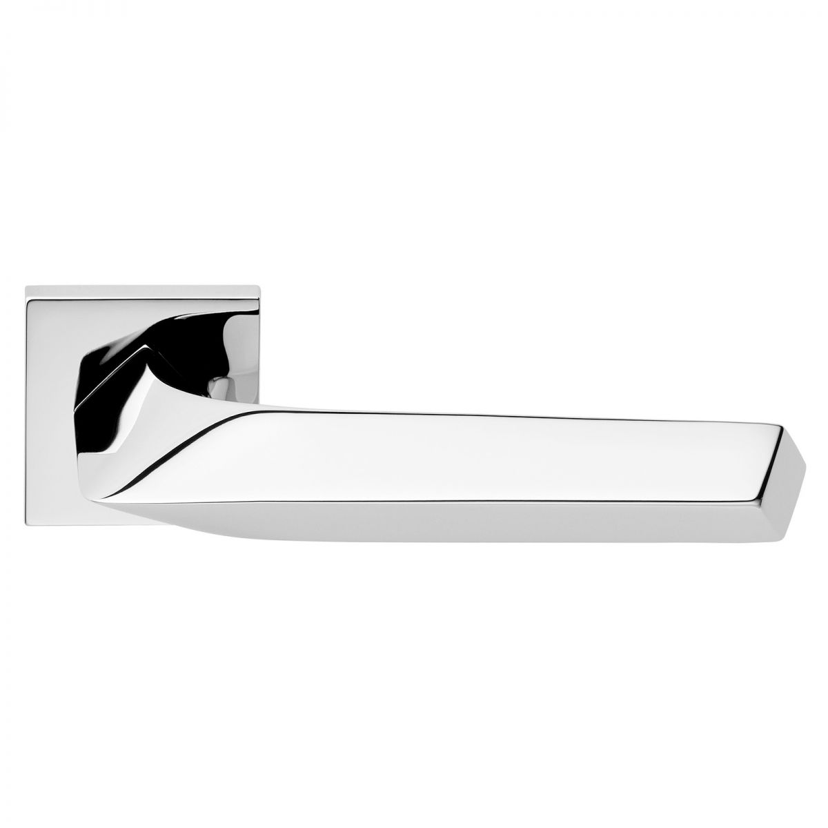 Maniglia per porta interna Rombo Linea Calì su rosetta quadrata bassa.