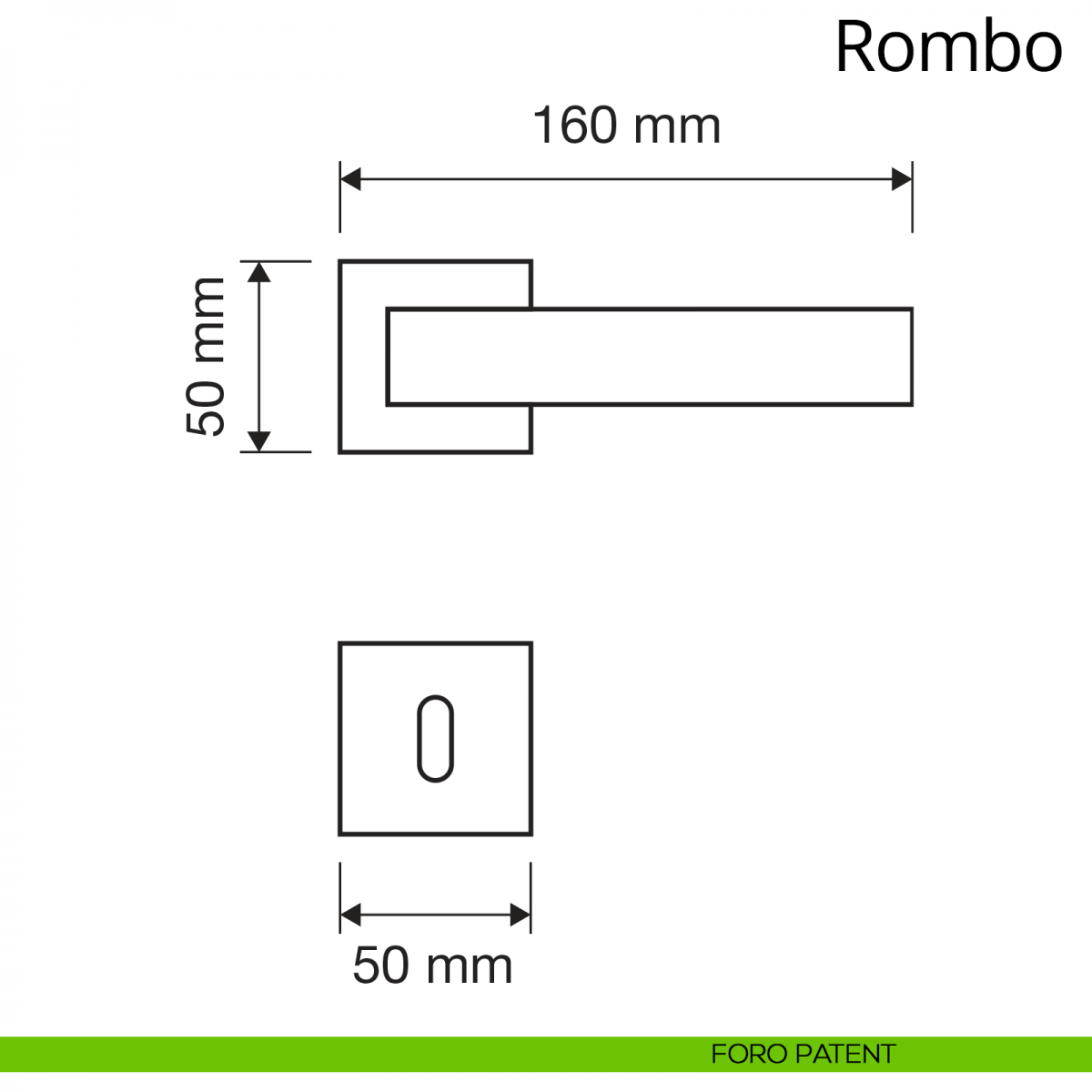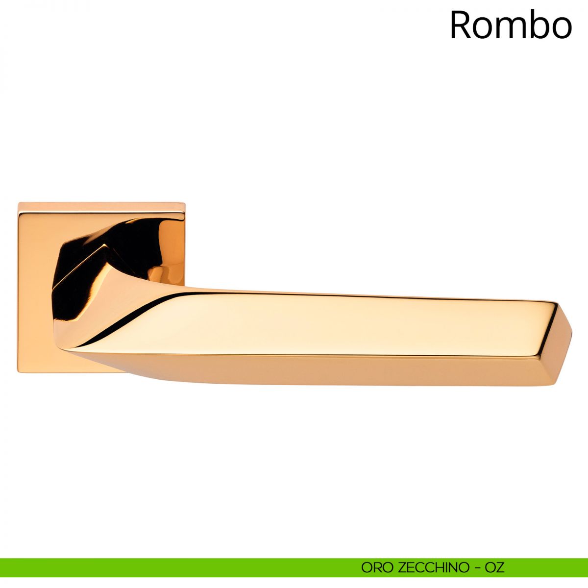 Rombo è una collezione di maniglie per porte e finestre moderna ed eclettica che attrae gli sguardi per via delle sue forme “apparentemente” spigolose. “Apparentemente” sì, perché tutti i profili sono stati smussati in modo da trasmettere una piacevole sensazione di comfort alla mano e al contempo non risultare pericolosi (tecnicamente parlando, tutti gli angoli sono raggiati). La maniglia si compone di un unico pezzo di ottone dal profilo romboidale che si sviluppa dando vita a un’impugnatura importante (la maniglia è lunga ben 160 mm). La particolare contrapposizione di piani data dalla forma romboidale dell’impugnatura, svela il design della maniglia a seconda delle condizioni di luce ambientali rivelando o meno la parte inferiore e rendendola, a seconda dei punti di vista, più esile di quella che è in realtà. Essendo realizzata interamente in ottone italiano di alta qualità è contraddistinta da un peso importante (ben 670 g una maniglia singola!) che non influisce sulla comodità e fluidità del movimento, ma trasmette una piacevole sensazione di solidità e la rende duratura.