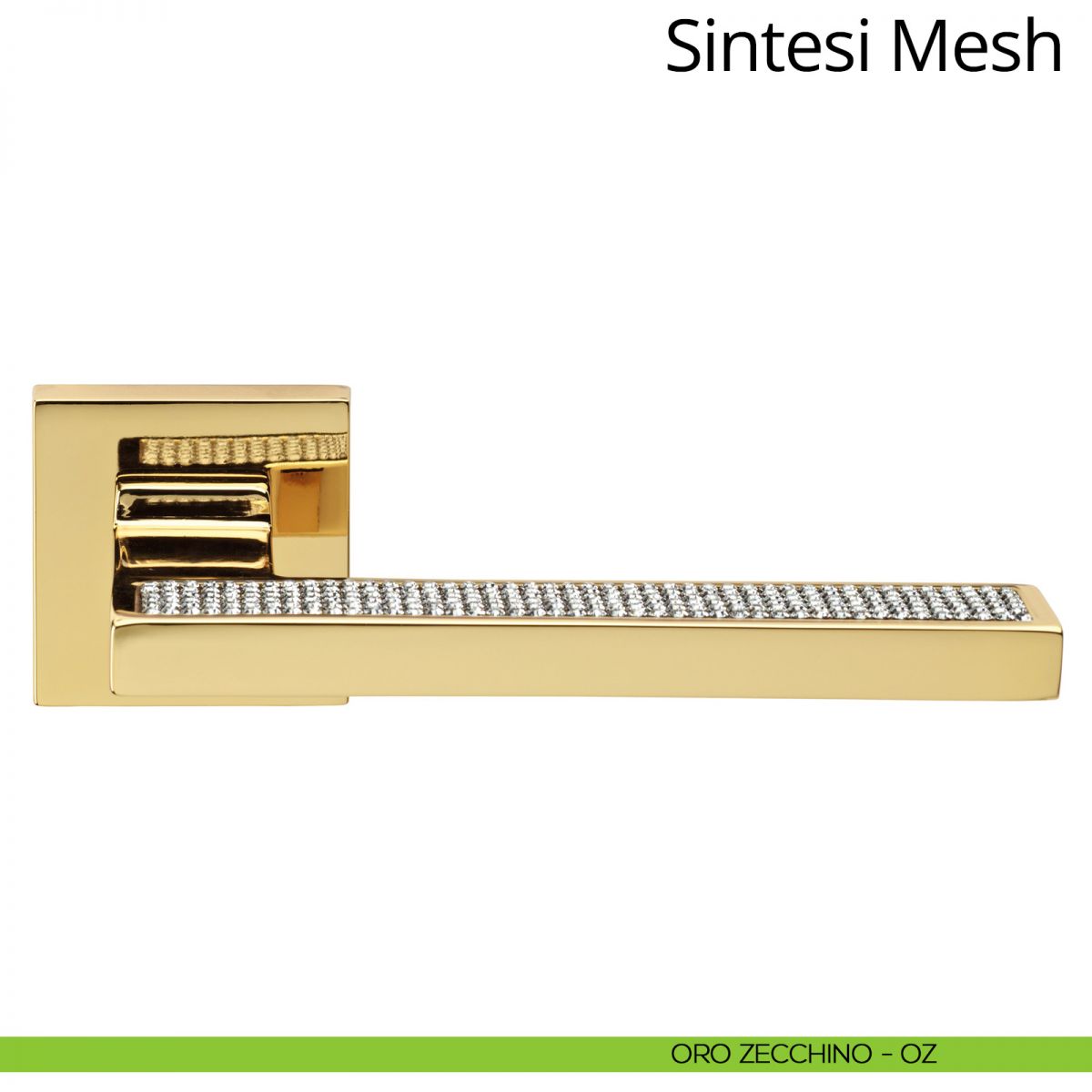 Maniglia per porta interna con Swarovski Sintesi Mesh Linea Calì su rosetta quadrata tradizionale.