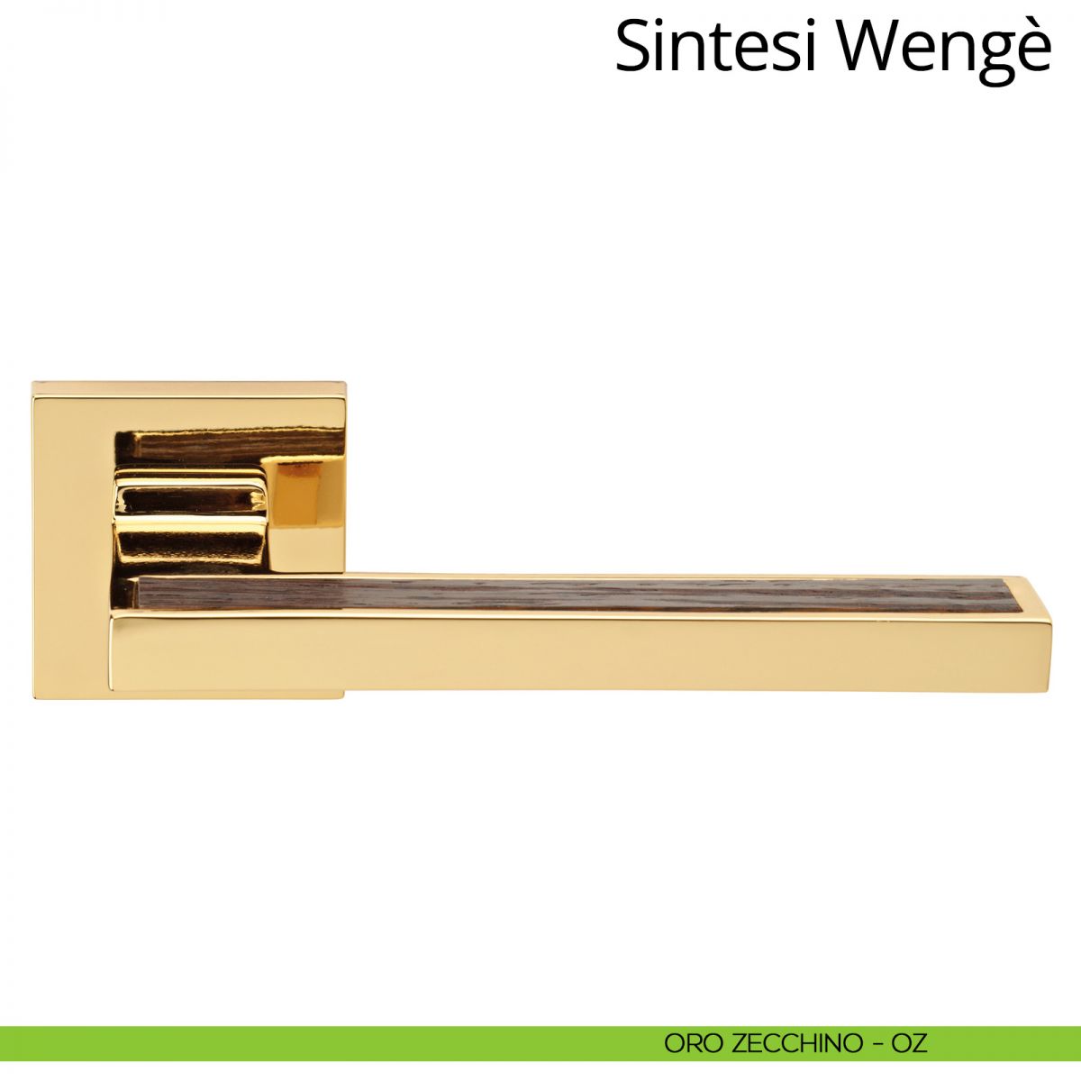 Maniglia per porta interna con legno Sintesi Wengè Linea Calì su rosetta quadrata tradizionale.