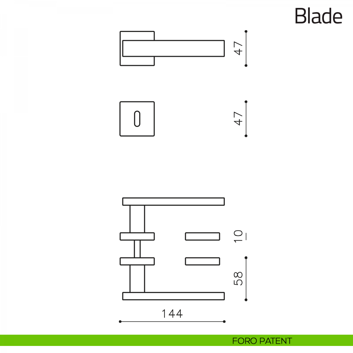 Maniglia per porta interna Blade Olivari con rosetta e bocchetta quadrata. Design by Peter Marino.