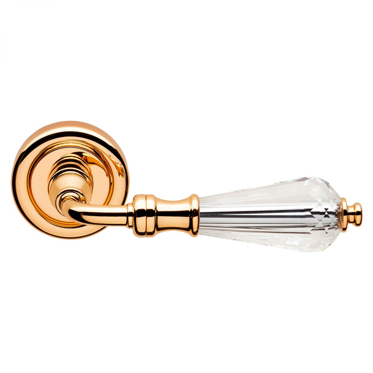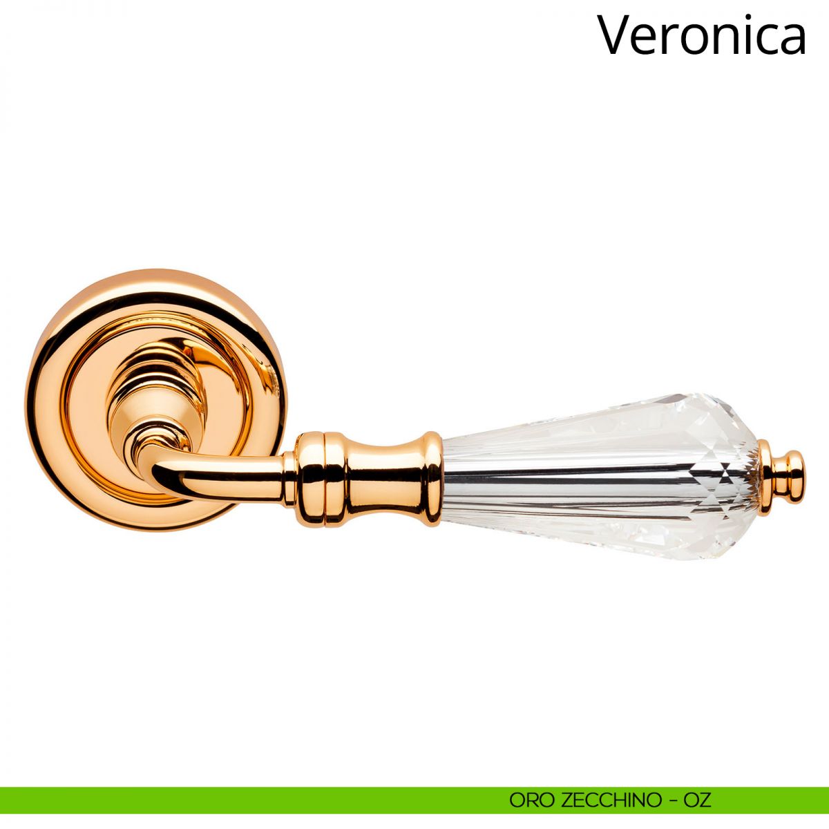 "Una bella donna non è colei di cui si lodano le belle gambe o le braccia, ma quella il cui aspetto complessivo è di tale bellezza da togliere la possibilità di ammirare le singole parti. Lucio Anneo Seneca, Lettere a Lucilio. Veronica è proprio così: affascinante, elegante e discreta. Una delle collezioni Linea Calì più apprezzata in tutto i mondo, la maniglia per porte Veronica è stata concepita per abbinarsi a porte e serramenti classici. Il gambo è caratterizzato da un elegante profilo che conduce lo sguardo all’impugnatura a clessidra, un classico della maniglieria italiana, che grazie al cristallo Swarovski® si trasforma in una gemma preziosa da toccare e ammirare. L’abile lavorazione del cristallo è evidente fin dal primo sguardo, quando le infinite sfaccettature brillano e risplendendo quasi di luce propria. Infine, la finitura in preziosissimo oro zecchino la “illumina” ulteriormente e le consente di farsi notare con eleganza e discrezione.
