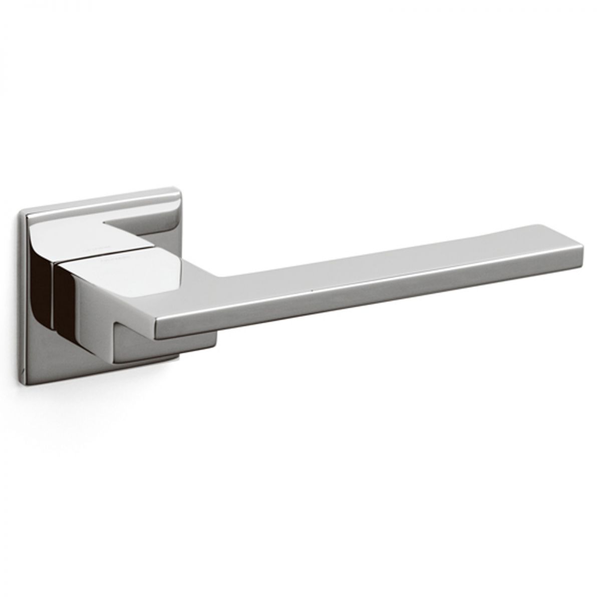 Maniglia per porta interna Living Olivari con rosetta e bocchetta quadrata bassa. Design by Dominique Perrault.