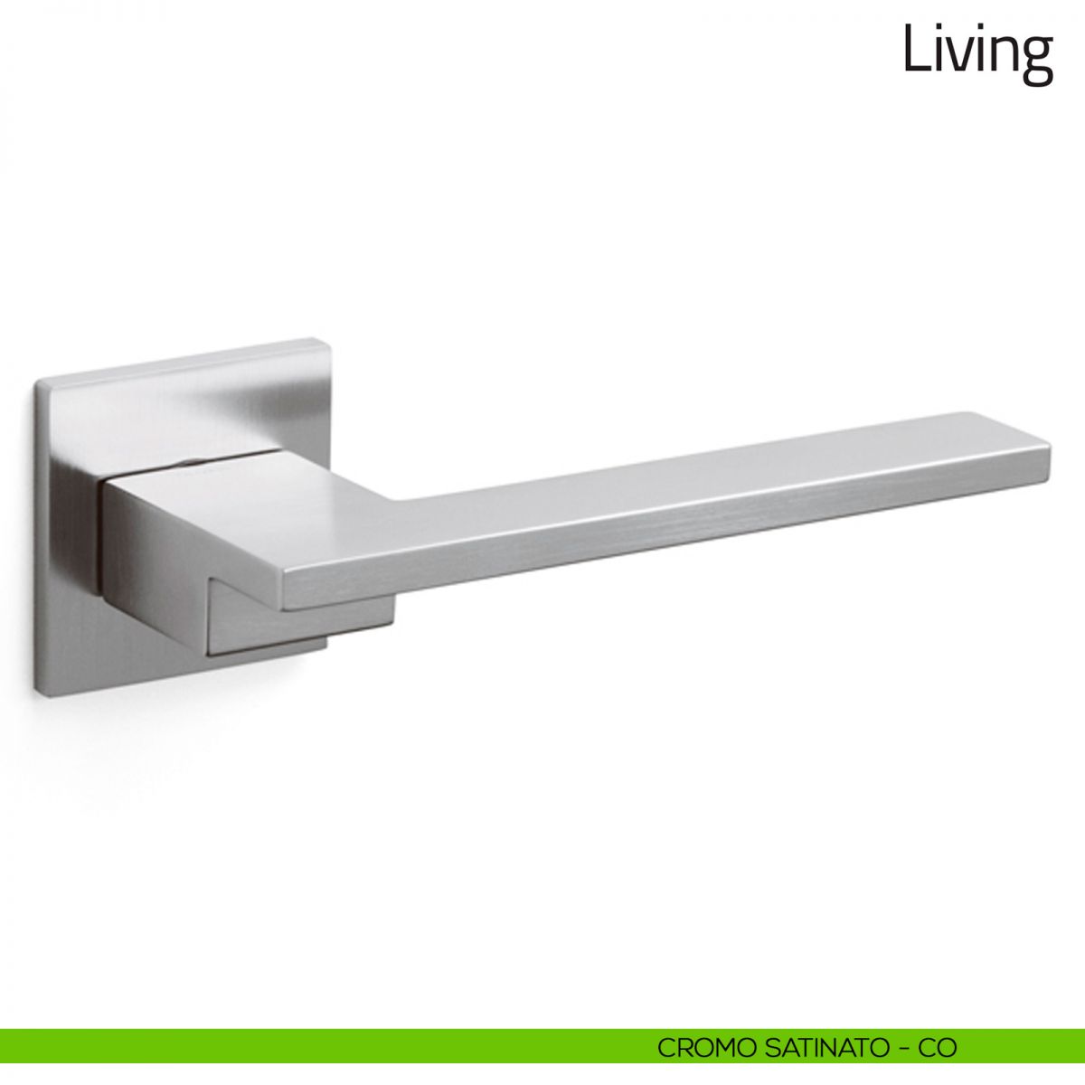 Maniglia per porta interna Living Olivari con rosetta e bocchetta quadrata bassa.