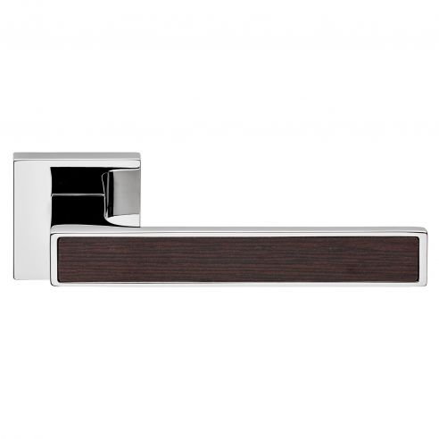 Maniglia per porta interna con Legno Zen Wengè Linea Calì su rosetta quadrata tradizionale.