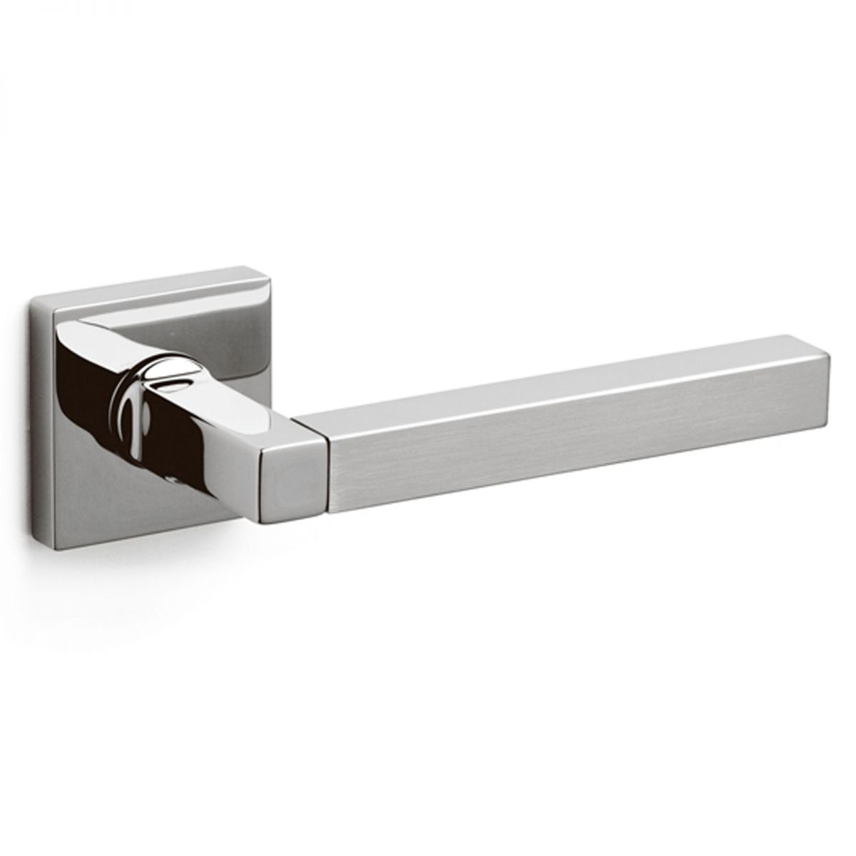 Maniglia per porta interna Time Q Olivari con rosetta e bocchetta quadrata foro patent. Design by Alessandro Mendini.